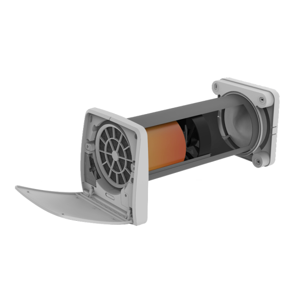 Il suo particolare scambiatore di calore ceramico è in grado di recuperare fino al 90% del calore emesso. Quando è spento, la paratia basculante si richiude impedendo l’ingresso di aria e rumore dall’esterno. Oltre che per ricambiare l’aria umida invernale, può anche essere usato per il normale ricambio d’aria estivo, evitando così di tenere le finestre aperte.